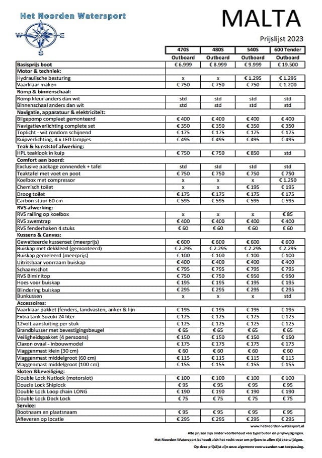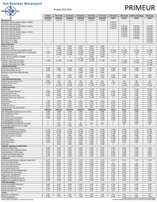 Klik op een van de onderstaande afbeeldingen om de volledige prijslijst te tonen. Voor de prijslijsten van Alumacraft en Kalf Trailers klik hier.